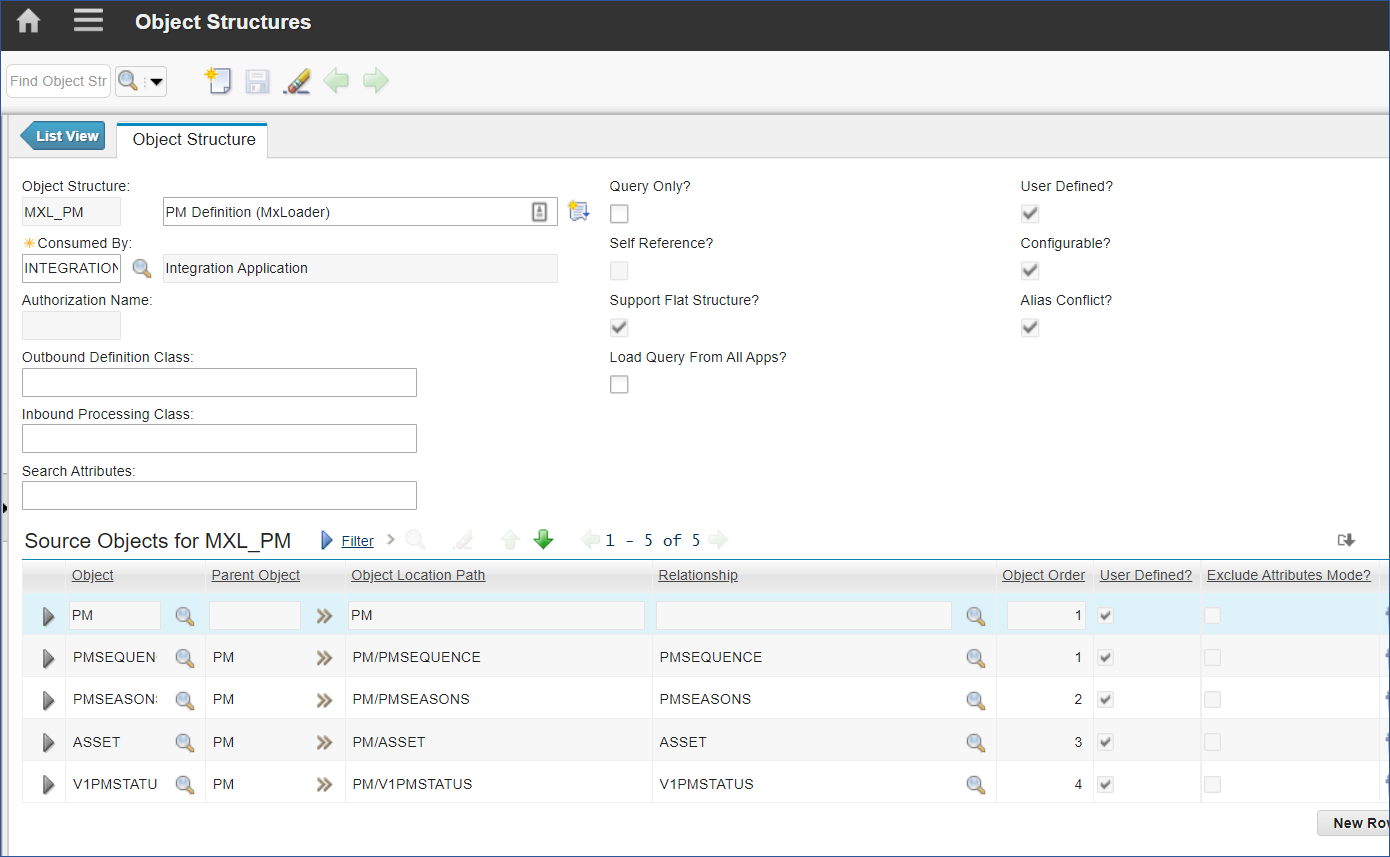 Source Objects for MXL_PM section.