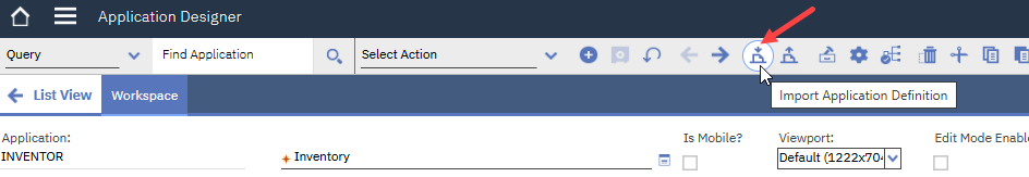 That would be "Import Application Definition" . Recommend you save a copy of the original XML for the application first, then create a working copy for the changes. If you need to you can always restore the application from the original file.