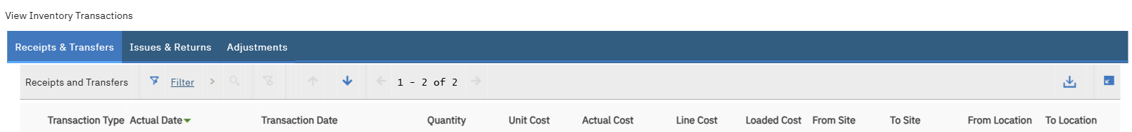 Subject: Receipts and Transfers from "View Inventory Transactions" in Application Designer.