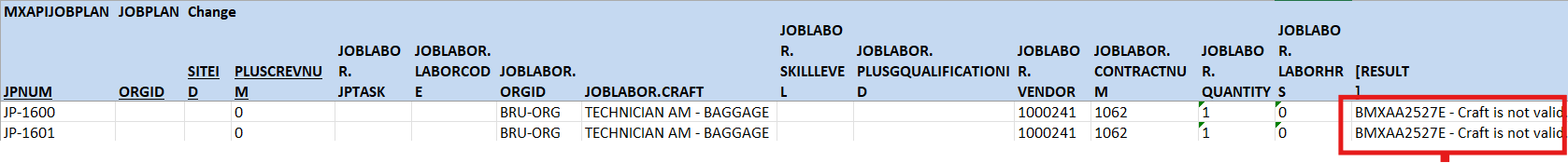 I am trying to populate the Craft field on my Job Plans, but I keep getting the following error: