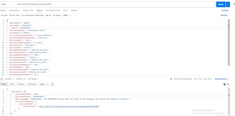 I have been trying to test the Maximo REST API for updating records and received this following error: