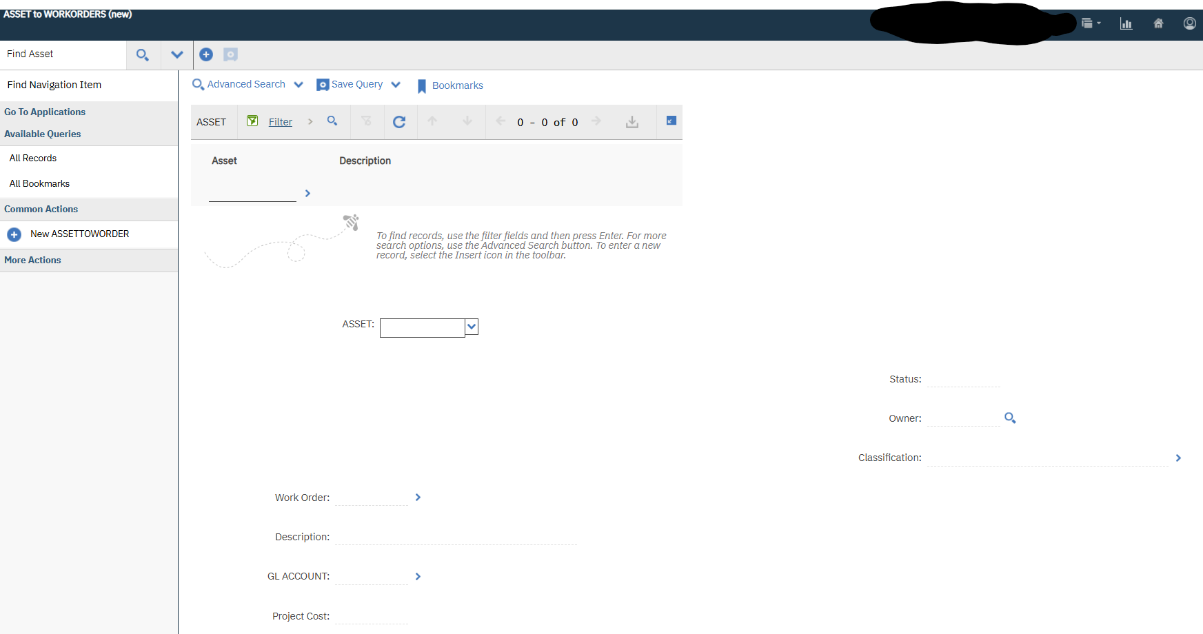 I have created an custom application called Asset to Workorders and the main objective is that a user can see work orders to assets including the GL accounts(project, cost categories) etc. What I want to be able to do is that when I click on new ASSET, it should automatically populate the other fields such as work order, description, GL Account, Project code. Here is what it looks like: