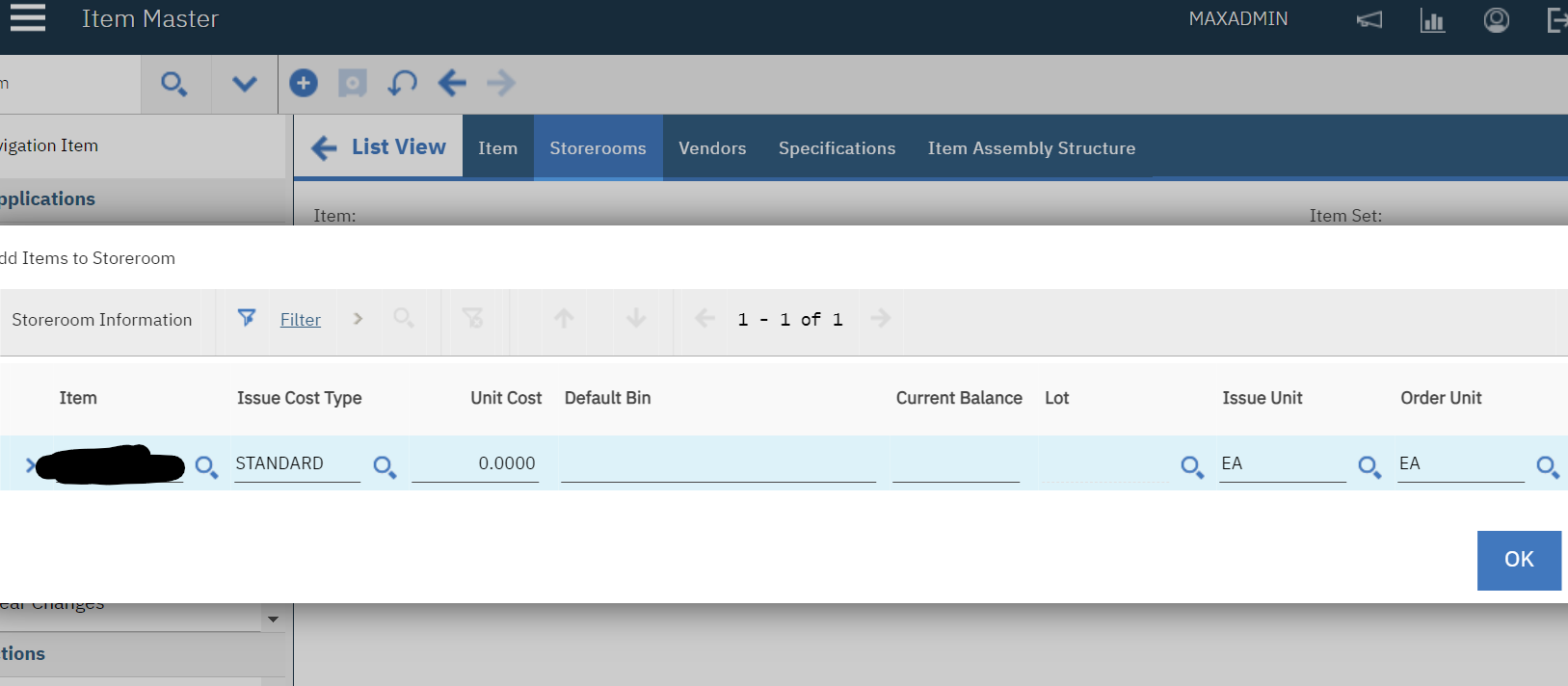 I was able to create an item in item master. The next step would be adding the item to the correct storeroom.
