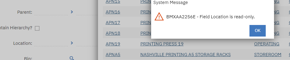 Getting this error message when selection a location when creating a new asset. Any idea?