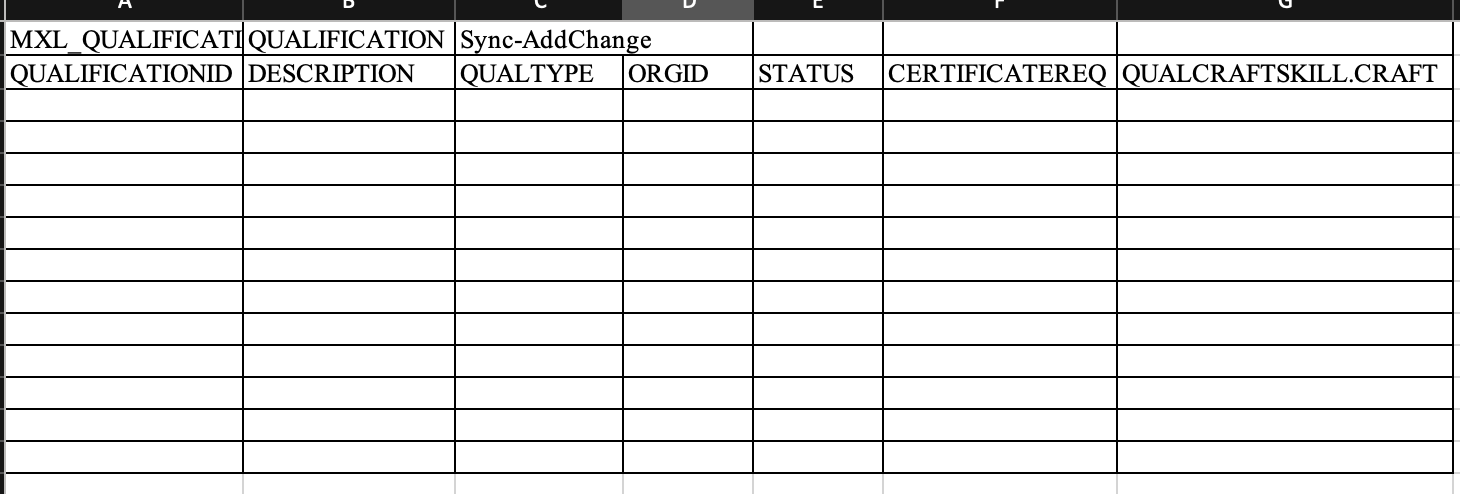 Now go to MXLoader > New sheet button > from windows select blank template and there paste following entries in excel and then use it to load qualification and associate craft with it.
