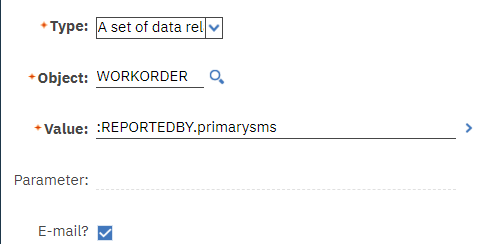 The option to send to the REPORTEDBY.primarysms is available but the REPORTEDBY.primaryemail is not an option.