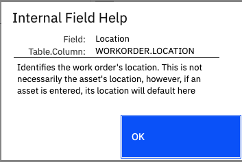 A few weeks ago, Lucas covered a way to help identify any field in Maximo. If you missed it, I will cover it here, but you can also go check out his blog here: 1. #TipTuesday: Instantly Identify Any Field in Maximo (Alt + F1). If you have upgraded to MAS, there is a new way to open the Internal Field Help Dialog on a record. As discussed by Lucas in 7.6, you can use ALT+F1 (this was my preferred method) or ALT+I. Both of those still work in MAS today but might not be the best or fastest.