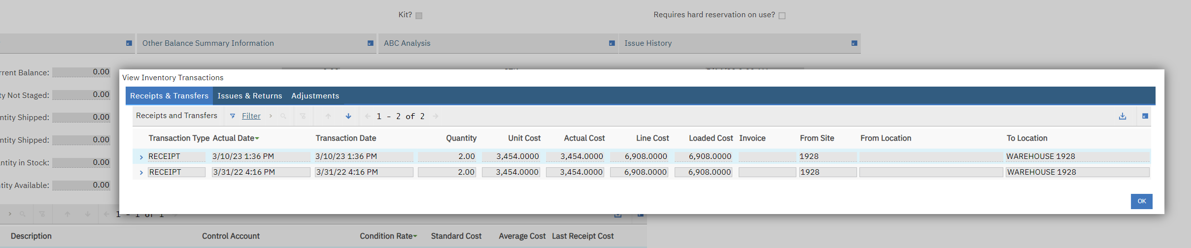 On inventory usage application under usage lines detailed view there is common section called "Transaction Details" for all use types.