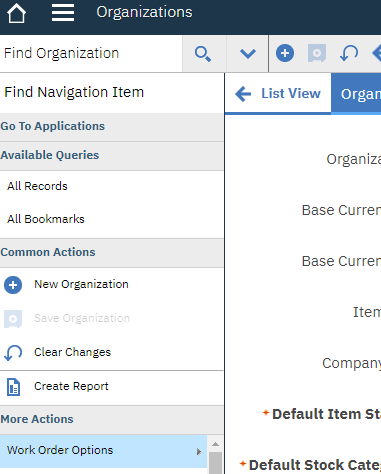 - Under More Actions in the left column click on "Work Order Options"