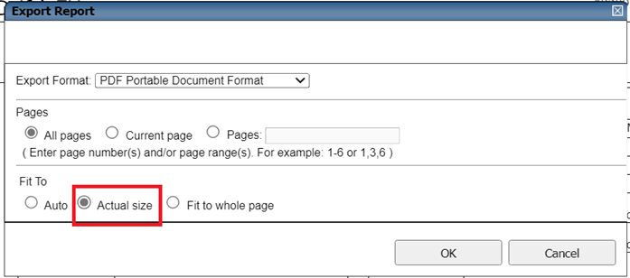 You'll need to edit the HTML file. Specifically you'll need to find the following DIV ID "exportFitSetting". In this DIV you'll see the three input types, exportFitToAuto has a value of "CHECKED" remove that and add to exportFitToActual.