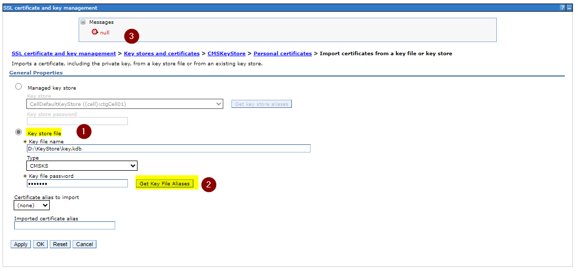 Select the certificate from the 'Certificate alias to import' drop down menu. Click 'Apply'.