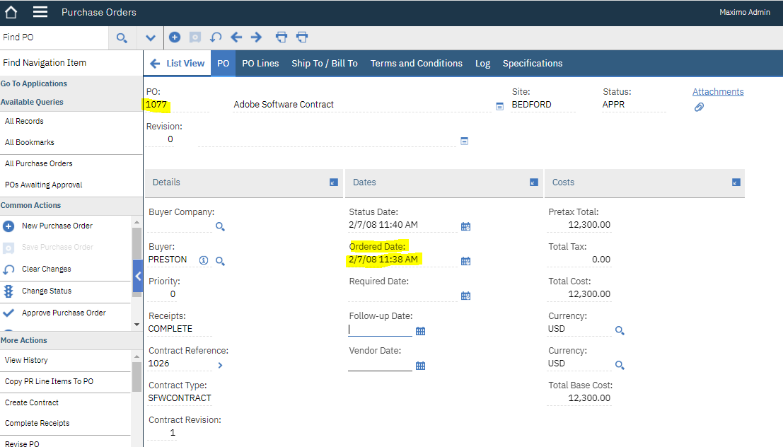 - Secondly, This field can also be automatically populated by Maximo through an internal logic. This logic looks at the delivery pattern of the vendor in terms of number of days between the PO Ordered Date and the Delivery Date(actual Date) in Receiving.As the Item goes through multiple iteration of purchasing, a history of past lead time would build up and that can be used to again calculate the new lead time.