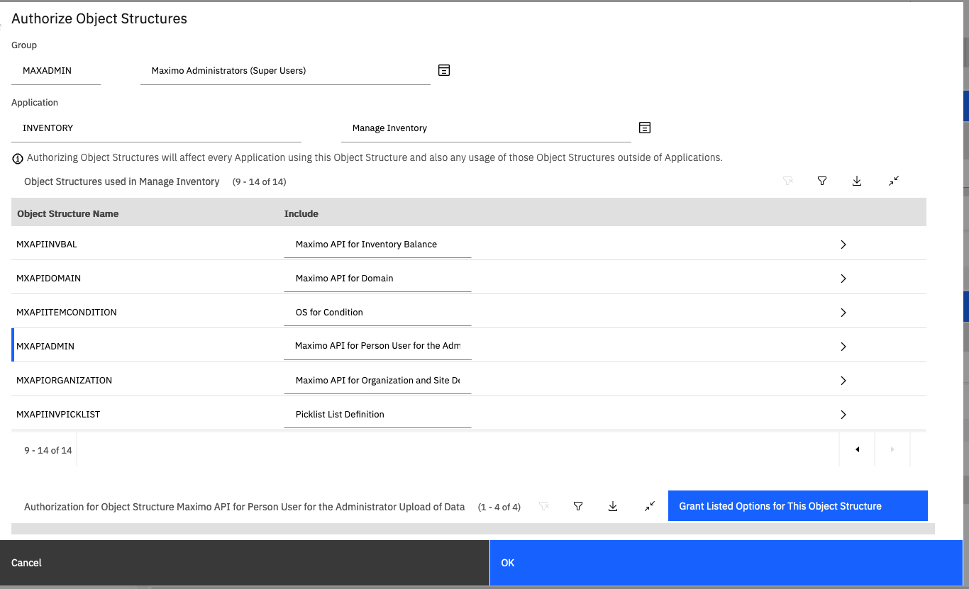 I did try to remove some of the Object Structure authorizations and didn't have any luck with the Create Picks not showing up. If I don't have access to the Object Structure, MXAPIINVPICKLIST, I can still see the action after I check the checkbox next to the reservation, but I get an error message saying I don't have authorization if I try to click Create Picks. You can see all the Object Structures that are granted when you apply the template by selecting Object Structure Authorizations. Some of the OS have Signature Options associated too. If you look through these, is everything granted?