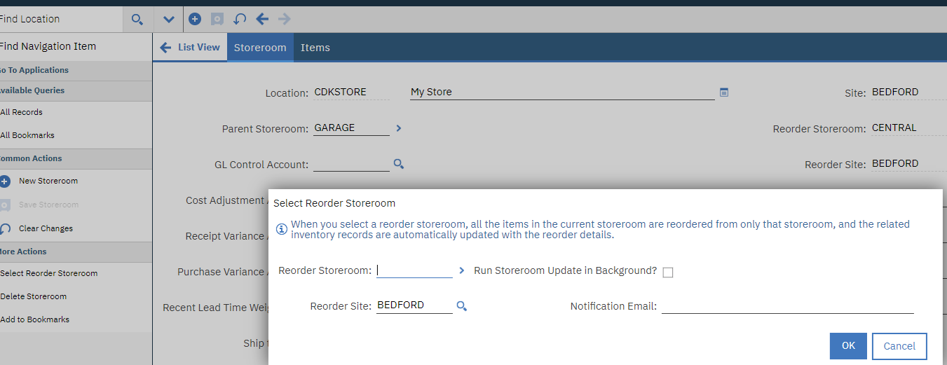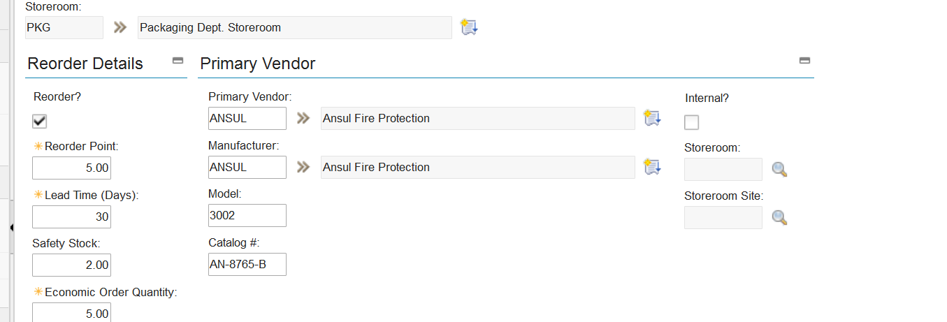 If you define a vendor, you can at any stage select a storeroom to replace the vendor. When you do this the Vendor field becomes read-only and to revert back to the vendor you have to uncheck the Internal? flag. There will be a delay between the operations, but for those of course, I can't wait so I save then complete the change.