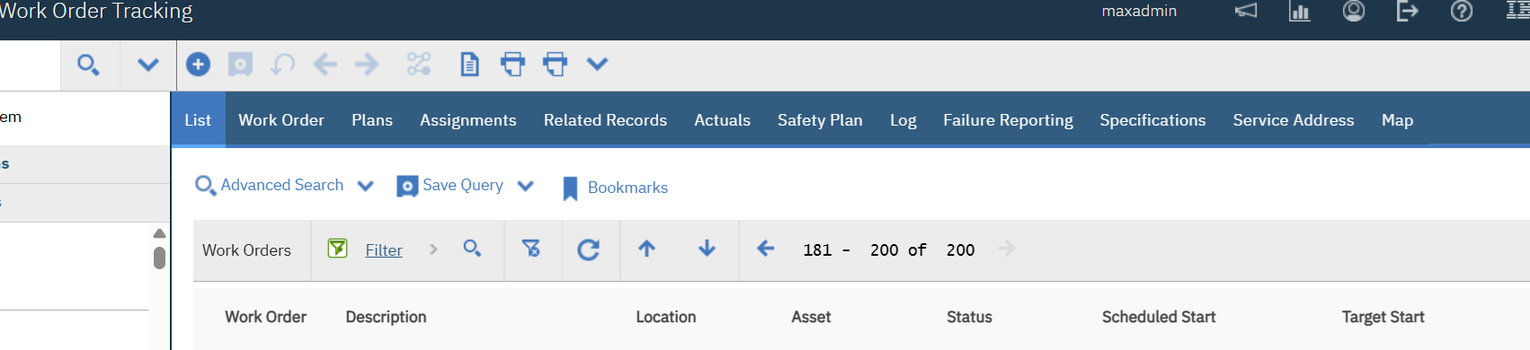 Since it only displays 200 rows for each module (eg, Workorders, start centers, assets, etc..) there are more records than 200 as you move though the next page via the arrow it stops at 200.